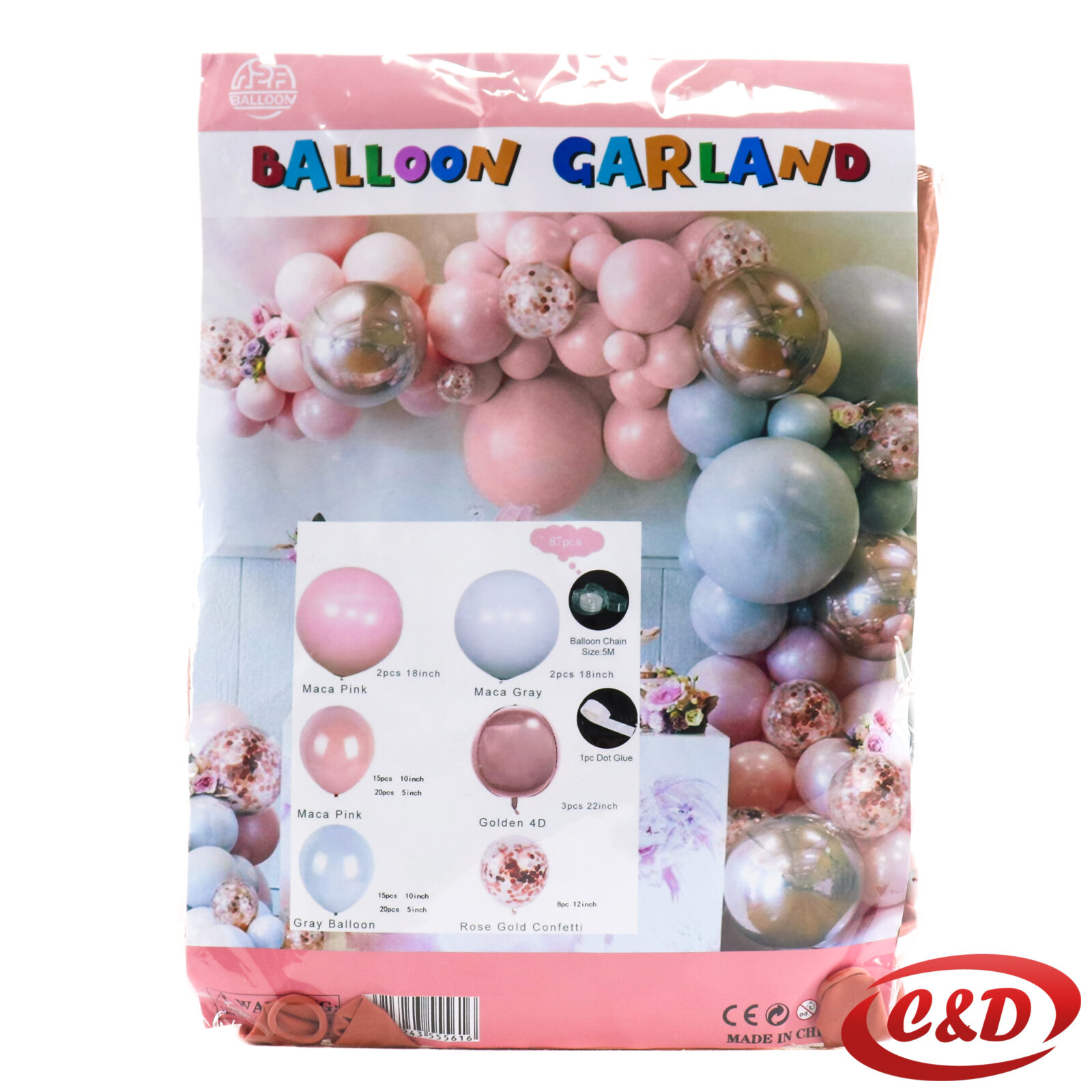 - 8 latex balona sa konfetima; (25 cm); Roza
