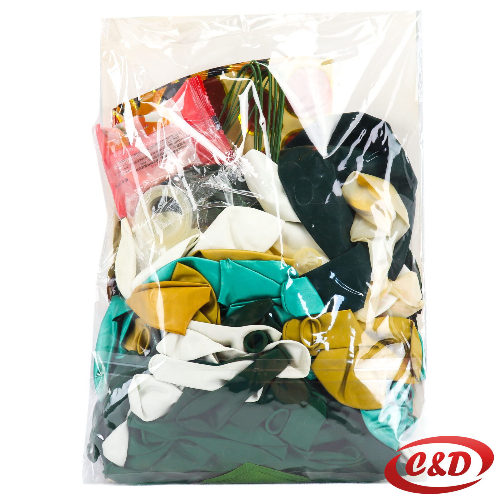 - 40 latex balona; (25 cm); Bijela, Zlatna, Zelena