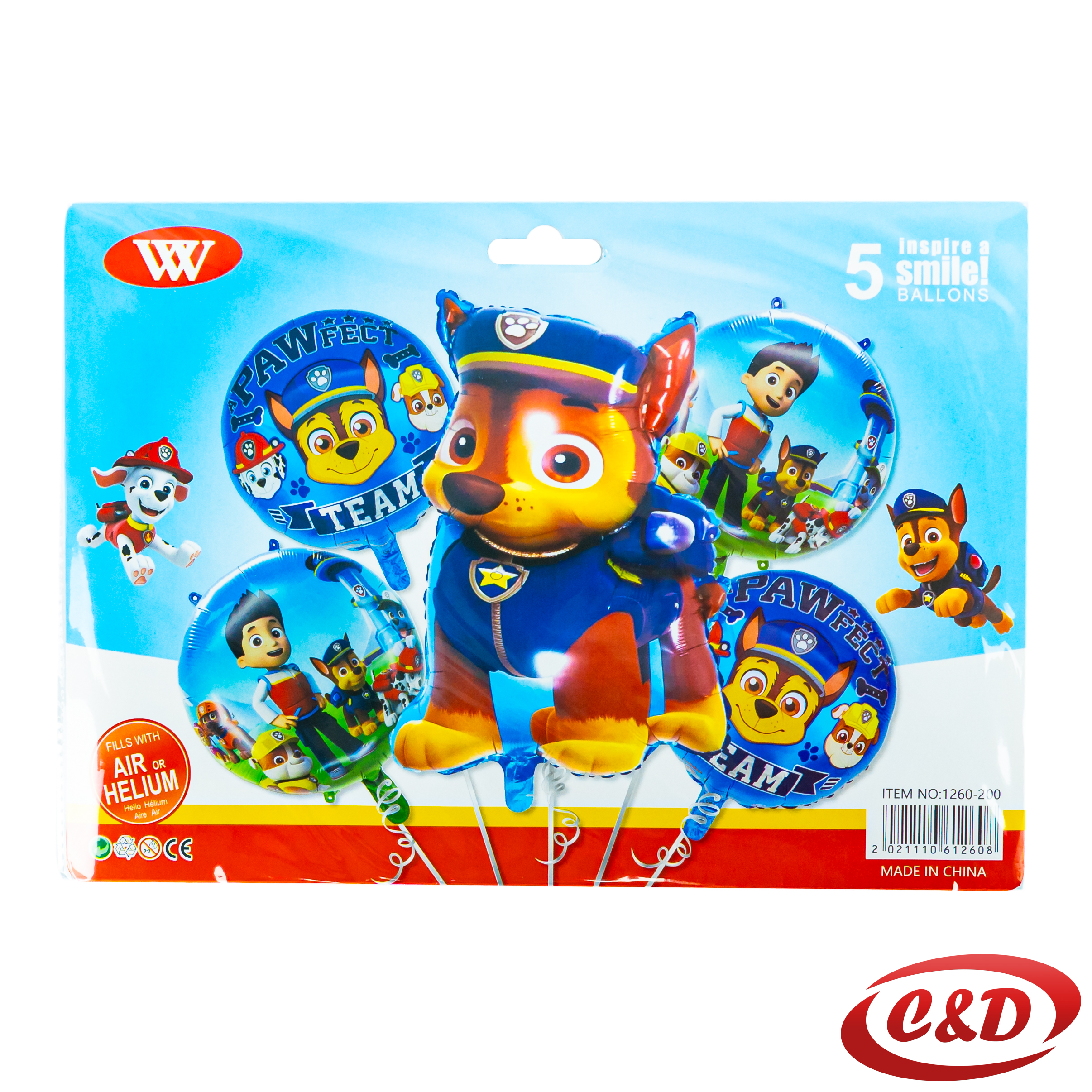 - 2 folija balona oblik Krug; print Paw Patrol; (40 cm); Plava