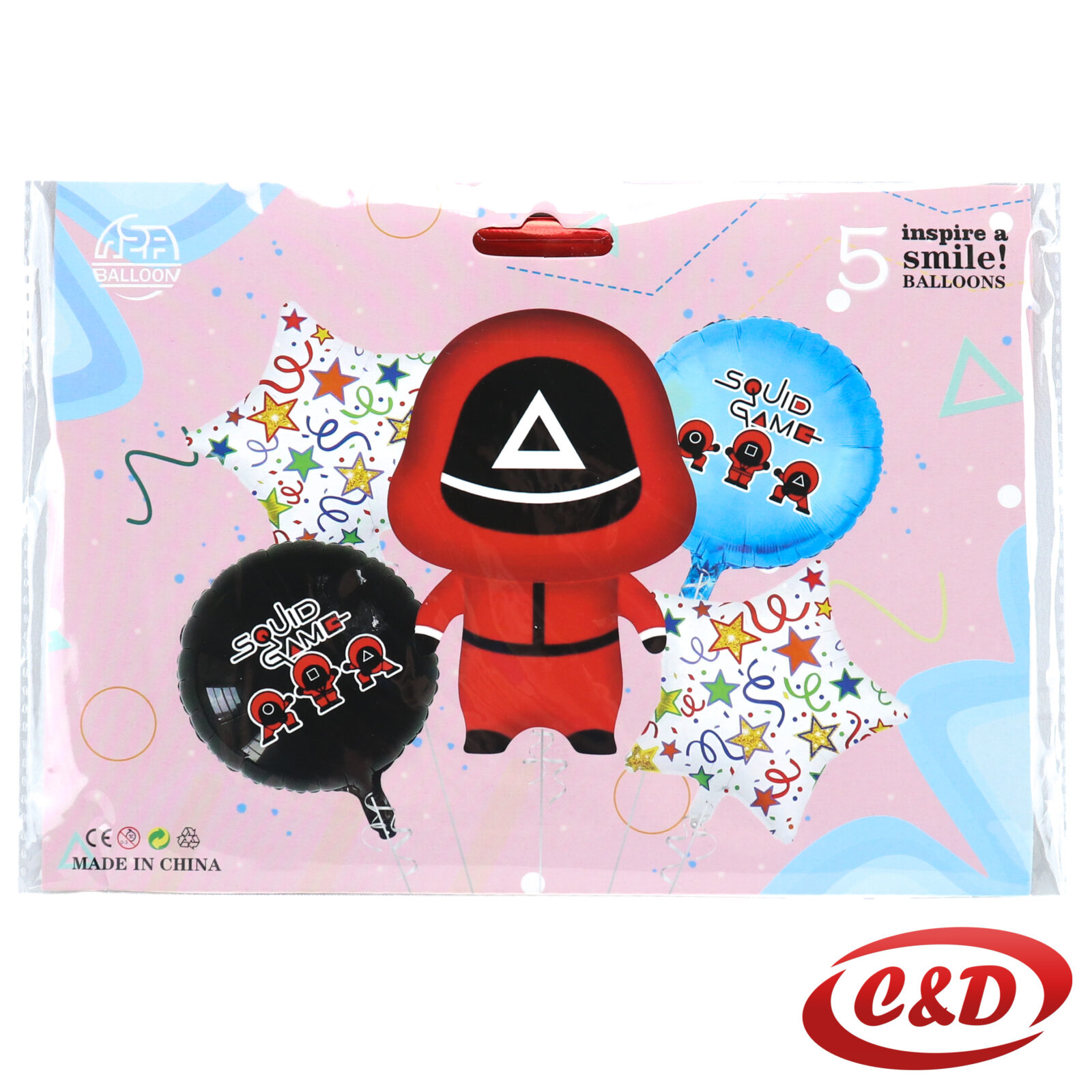 - 1 folija balon oblik Squid Game ; (60 cm); Crvena, Crna, Bijela
