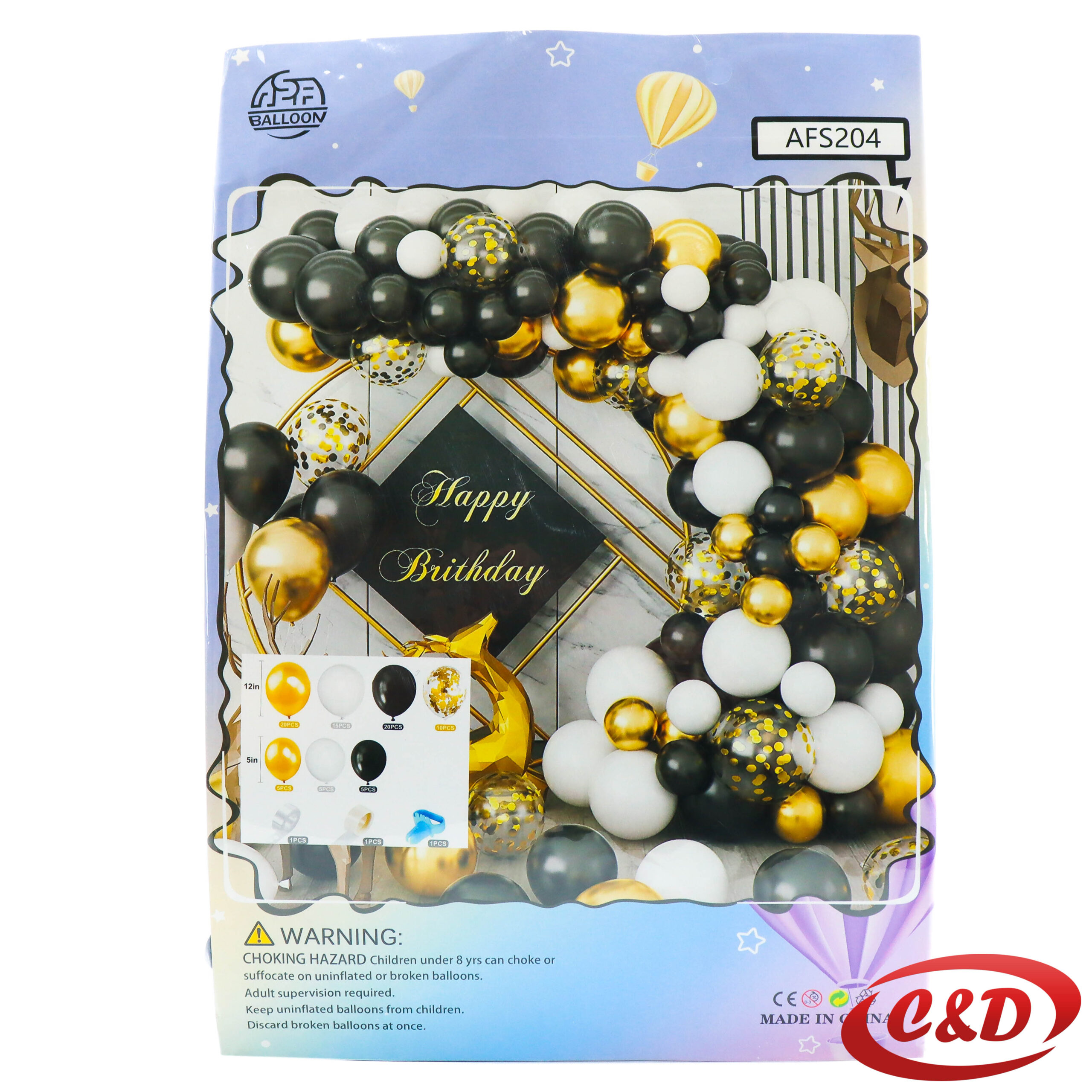 - 55 latex balona; (30 cm); Zlatna, Bijela, Crna