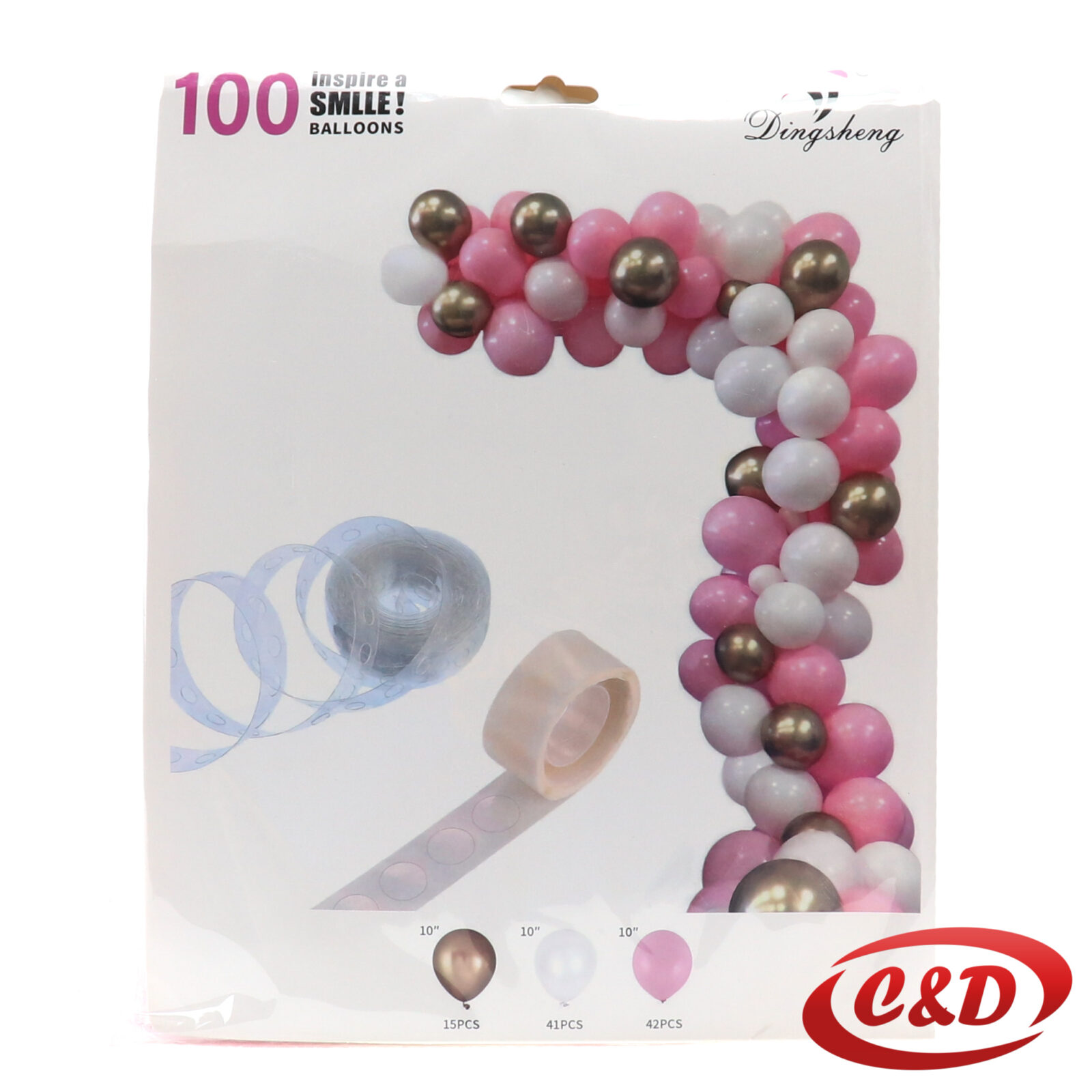 - 100 latex balona; (30 cm); Bijela, Zlatna, Roza