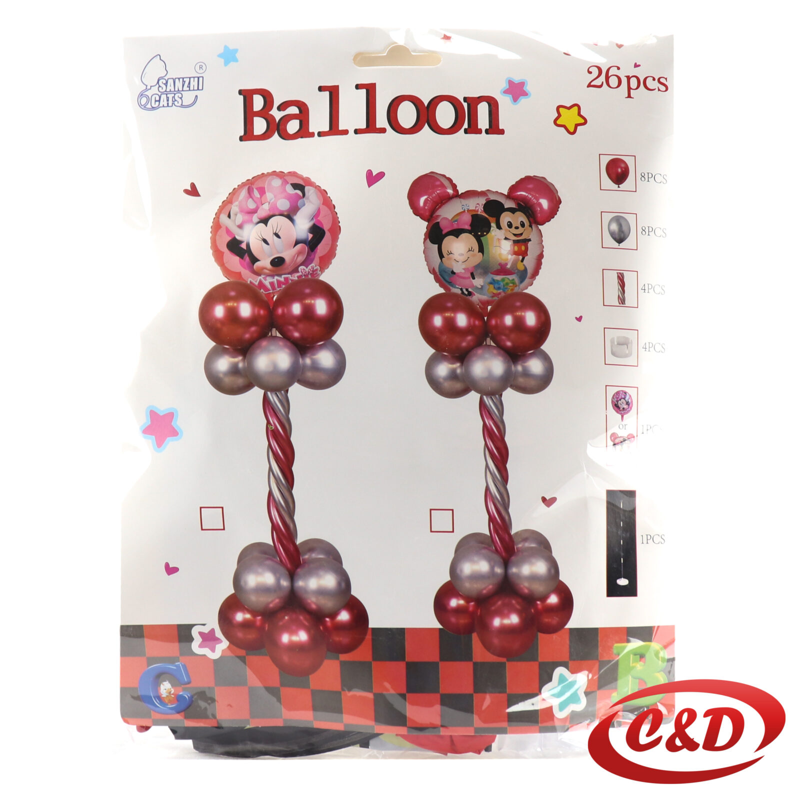 - 2 folija balona oblik Krug; print Mickey Mouse; (65 cm); Crvena, Roza, Crna