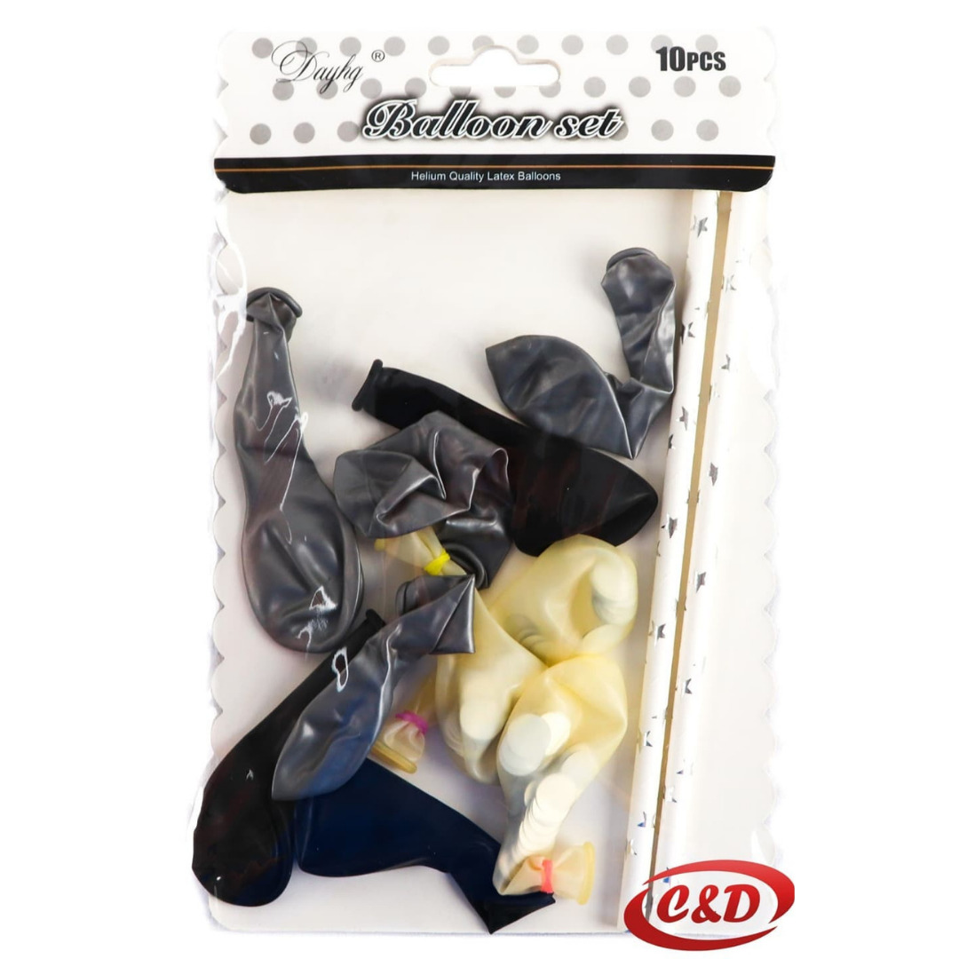 - 7 latex balona; (12 cm); Srebrna, Crna