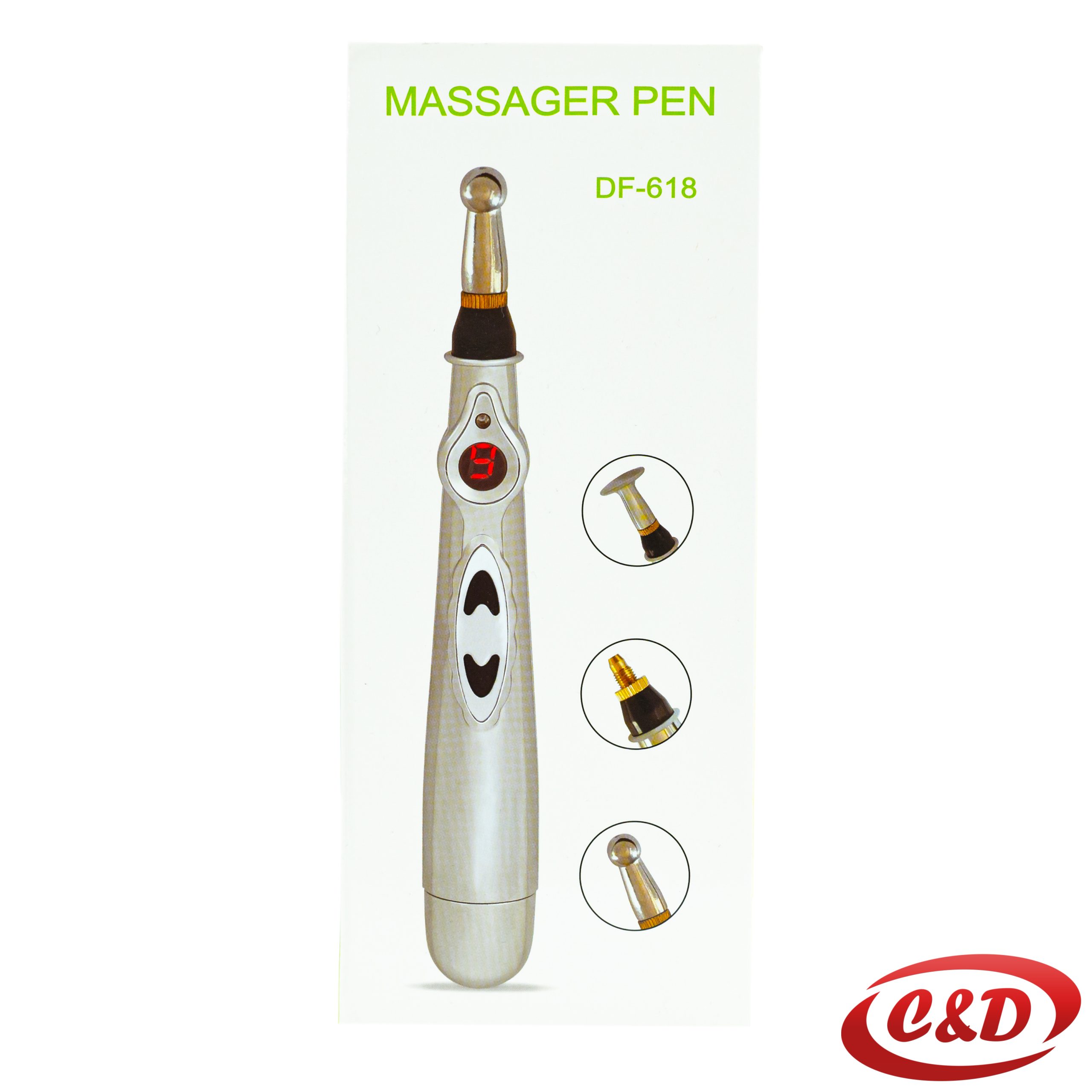3 masažne glave: električna masažna olovka dolazi s tri masažne glave – kupolastim, sferoidnim i čvornim. Ove tri zamjenjive masažne glave primjenjive su na mišićima lica, mišićima tijela i bolnim područjima.