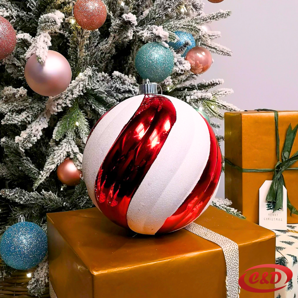 Uljepšajte svoj dom uz veliku novogodišnju kuglu promjera 30 cm, izrađenu od kvalitetnog i laganog materijala koji omogućava jednostavno postavljanje i sigurnu upotrebu.