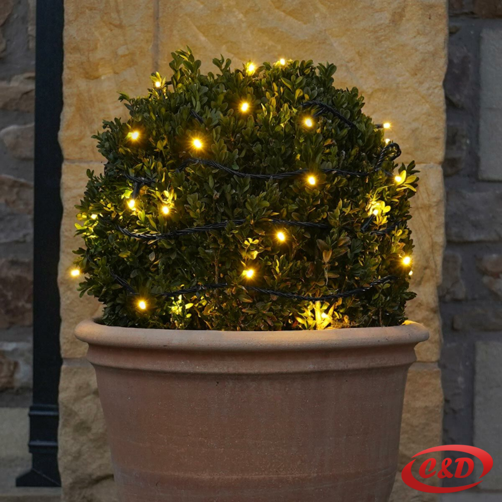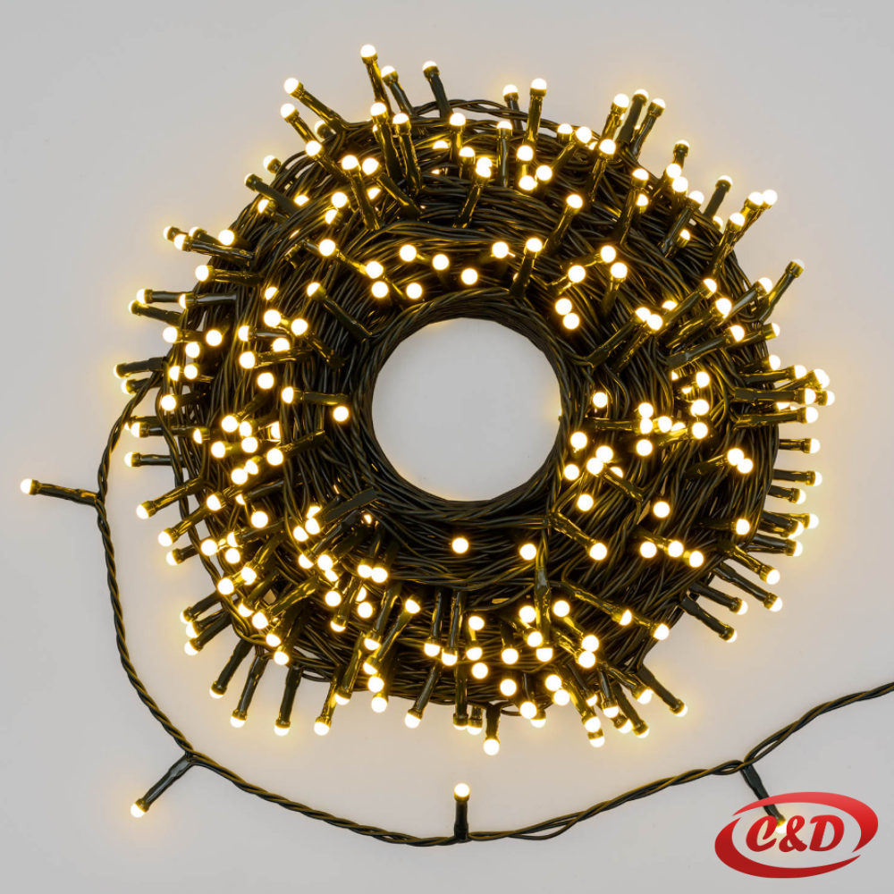 Ove dekorativne lampice dužine 50 m sadrže 500 LED svjetala koja svijetle u ugodnoj toploj bijeloj boji.