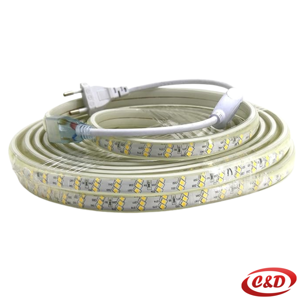 Ova traka radi na 220 V, što znači da ne zahtijeva dodatni transformator – jednostavno se priključuje direktno na mrežno napajanje pomoću utikača.