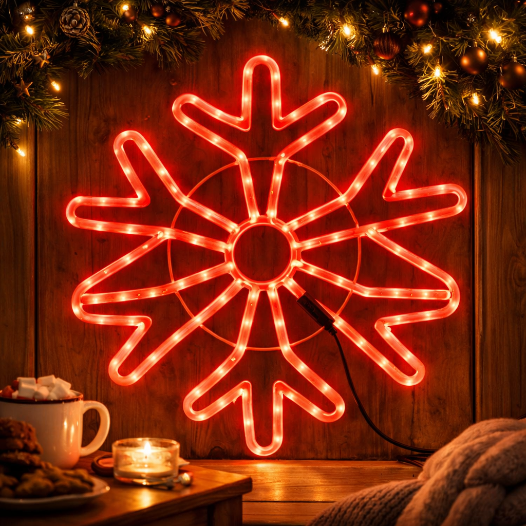 Unesite izražen blagdanski akcent u svoj prostor uz LED pahulju promjera 70 cm u crvenoj boji. Klasičan zimski motiv u kombinaciji s intenzivnim crvenim LED svjetlom stvara toplu, svečanu i vizualno snažnu atmosferu koja privlači pažnju.
