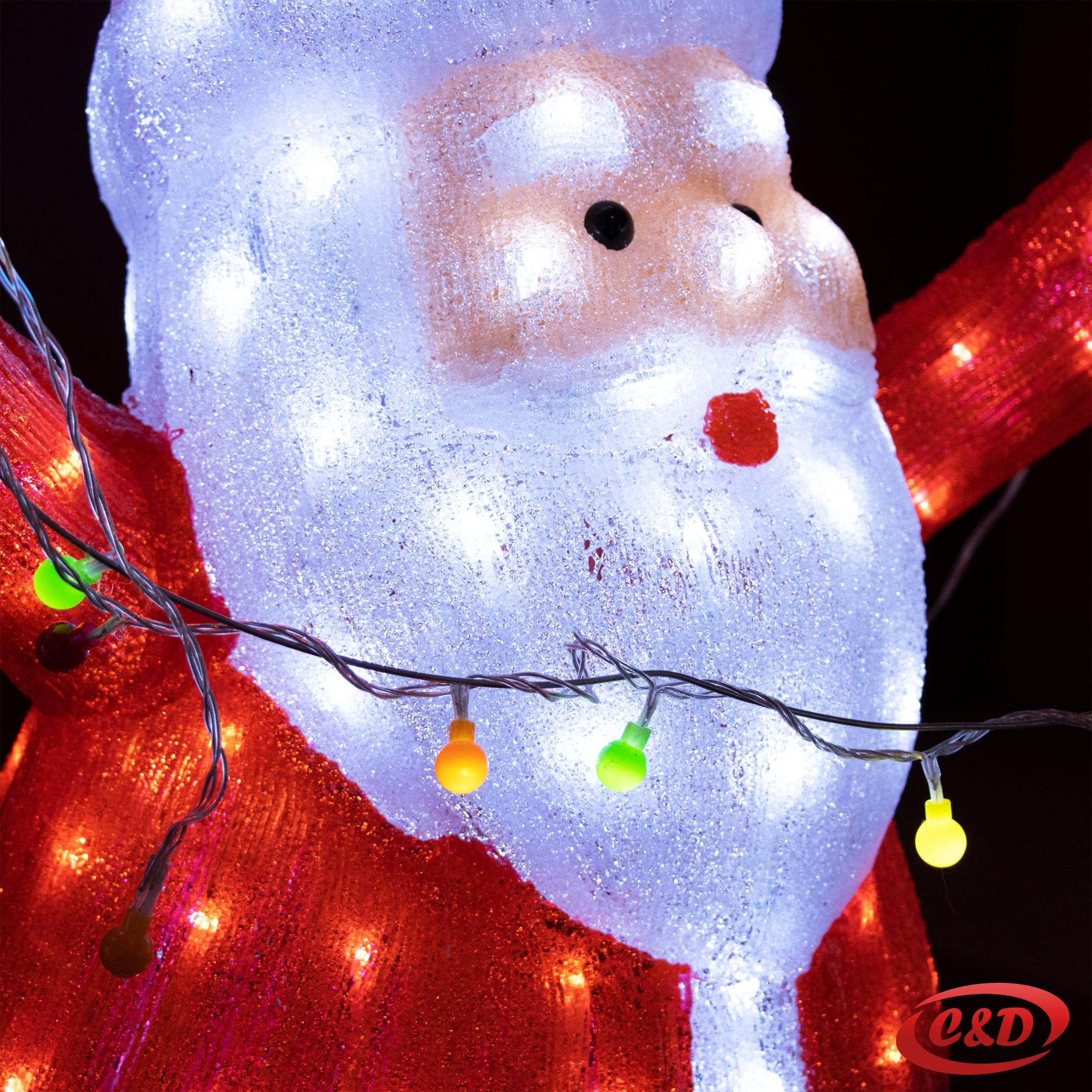 Djed Mraz je izrađen od kvalitetnih materijala, a LED tehnologija osigurava dugotrajnost, nisku potrošnju energije i sigurno korištenje. Zahvaljujući električnom utikaču i 100 cm dugom kablu u bijeloj boji, jednostavan je za postavljanje u unutrašnjim i vanjskim prostorima.
