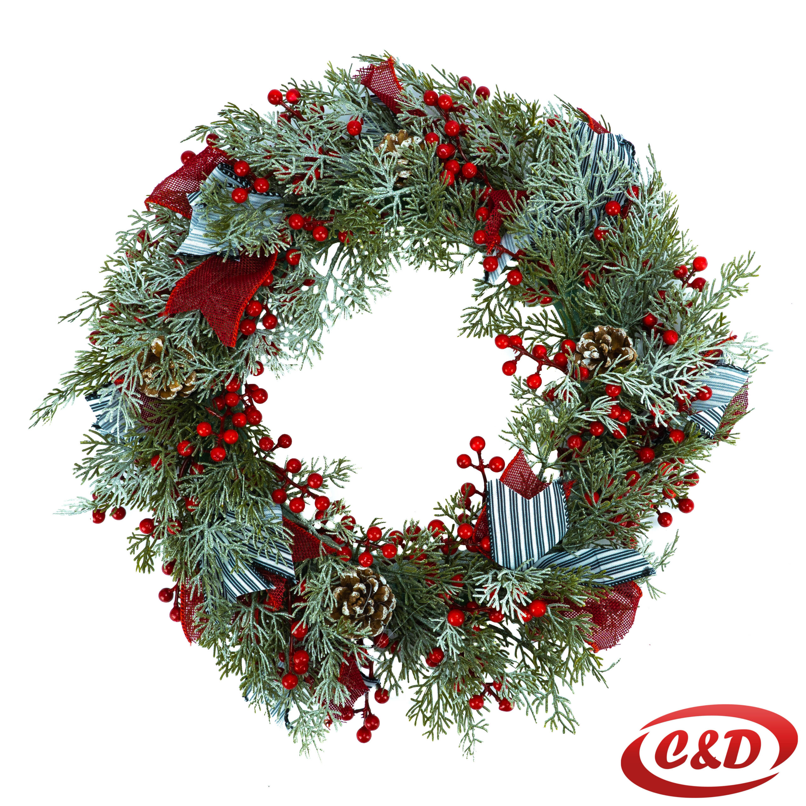 Bogato ukrašen crvenim bobicama, ovaj vijenac stvara savršen spoj zimskog ugođaja i elegantne blagdanske dekoracije.